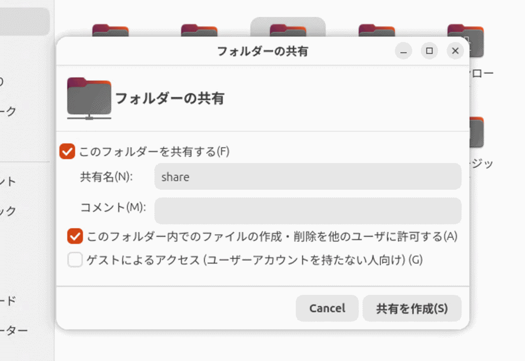 Ubuntuでファイルを共有する場合、一般的なのはSambaを利用する方法です。もっとも手軽に行うのは、フォルダ右クリックメニューから共有する方法です。 右クリ…