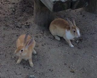 フェリーに乗って約15分で到着。上陸すれば、すぐにうさぎ達がやってきます。いたるところにワサワサといるので、すぐに見つけられますし、人懐っこく、気を抜けばすぐに囲まれてしまいます。暑いせいか、木陰でだらけているうさぎも。
