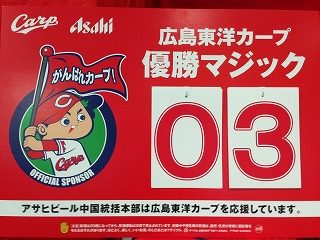 広島東洋カープは絶好調! 昨夜も選手全員の気迫溢れるプレーで勝利をもぎとり、自力でマジックを1つ減らし、ついにマジック3になりました!