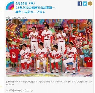 「アメトーーク!緊急!!広島カープ芸人」は今日9/29(木)の夜、23:15から放送です!