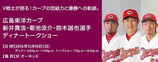 12/18開催の「広島東洋カープ 新井貴浩・菊池涼介・鈴木誠也選手ディナートークショー」、申込は明日11/17(木)10時~