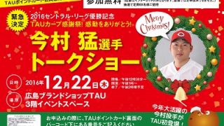 12/22開催のTAUカープ感謝祭! 感動をありがとう!「今村 猛選手トークショー」。申込締切は本日12/18(日)の24時まで!