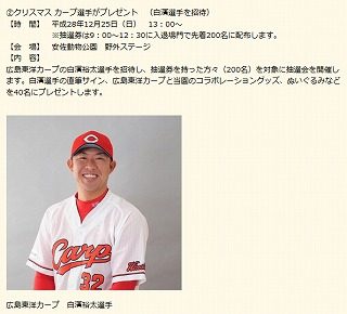 明日12月25日(日)に行われる予定のカープ選手のイベントは、調べた限りでは4つ。