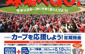 カープが勝ったら定期預金の金利がアップ! 広島銀行が毎年実施している「〈ひろぎん〉カープを応援しよう!定期預金」が今シーズンも取り扱いされるそうです。取り扱い期 … 続きを読む カープが勝てば利率アップ!「〈ひろぎん〉カープを応援しよう!定期預金」の取扱が3/1~開始!
