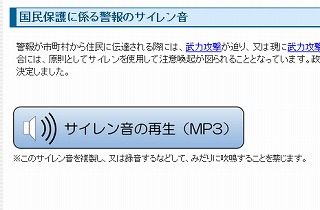 また「内閣官房 国民保護ポータルサイト」では警報のサイレン音を聞けるようになっています。急にサイレンが鳴っても慌てないように、こちらも一度確認しておきたいところです。