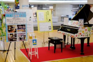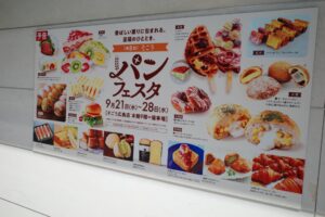 まず店頭からカープグッズを案内するノボリや「読書するカープ坊や」が描かれた看板が。