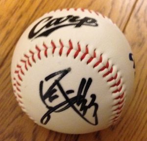 考えてみれば今シーズン最初のヒーローインタビューと記念Tシャツは安部選手でしたね。4月1日の試合でサヨナラ安打を放ち「サヨナラヒットTシャツ」が作られました。そして安部選手の活躍を記念し、作られました!それも「安部サヨナラホームランTシャツ」と「覇気Tシャツ」が一気に!!「覇気Tシャツ」の「覇気」という文字は、サヨナラホームランを打った直後の安部選手が、自ら筆を執り力強く書き記したそうです。