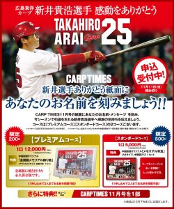 広島テレビの森 拓磨アナウンサー著「黒田博樹 人を導く言葉 – エースの背中を追い続けた15年 – 」がワニブックスから9月21日(木)に発売されます。広島テレビアナウンサーとして15年間にわたり親交を深めらており、選手と取材者という垣根を越え、黒田博樹さんの知られざる一面を描かれた内容だそうです。