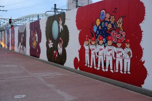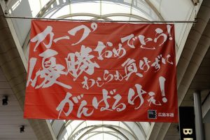 広島駅の北口に、カープのセ・リーグ連覇、V8を祝う巨大なパネルが設置されていましたが、「2017 マツダ クライマックスシリーズ セ ファイナルステージ」の開始に合わせ、張り替えられていました。
