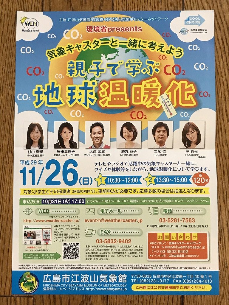 お馴染みの気象キャスターと一緒に!「親子で学ぶ地球温暖化」参加申込受付中、10/31(火)まで