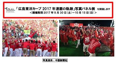 TAUで「広島東洋カープ2017年連覇の軌跡」写真パネル展開催!9/30(土)~10/15(日)