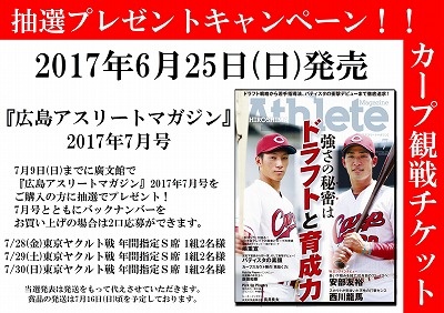 廣文館限定!6/25(日)発売「広島アスリートマガジン」7月号を買ってカープの応援に行こう!