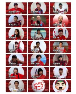 今回発売されるのは「Tシャツ(レッド・グリーン)」(各税込3,000円)、「フェイスタオル」(税込2,500円)、「トートバッグ」(税込2,500円)。どのグッズもJTサンダーズのユニフォームを着た「カープ坊や」がプリントされているほか、Tシャツの裏面には両チームのマスコットキャラクター「スラィリー」と「サンダー坊や」がプリントされています。