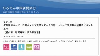 広島電鉄と中国新聞社が出資して設立された「ひろでん中国新聞旅行」で、2月からスタートするカープ日南キャンプの見学ツアー「広島東洋カープ 日南キャンプ見学ツアー3 … 続きを読む ひろでん中国新聞旅行でカープ日南キャンプ見学ツアー開催!カープ油津駅お披露目イベントも
