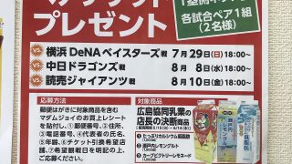 マダムジョイで広島協同乳業商品を買ってカープ観戦ペアチケットを当てよう!6/14(木)まで