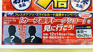 フレスタのキャンペーンで12/14(金)の「カープ選手トークショー」の入場券ゲット!