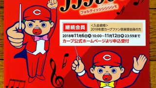 今年もカープファン倶楽部の案内が出ましたね。ファン倶楽部には毎年キャッチフレーズが付きます。2018年度は「最高のコイの見つけ方。」、2017年度は「コイココロ … 続きを読む 2019年度カープファン倶楽部の募集は継続受付が11/6(火)~、単年会員は11/15(木)~