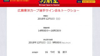12/1(土)打劇王温品店で今村投手と堂林選手出演「広島東洋カープ選手サイン会&トークショー」