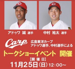 広島市南区にある「広島段原ショッピングセンター」で、12月1日(土)12:00から「広島東洋カープ岡田選手、西川選手によるトークショーイベント」が開催されます。