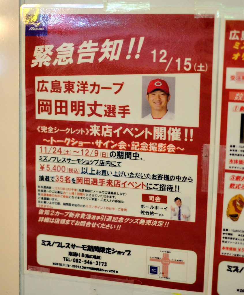 12/15(土)「ミズノブレスサーモショップ」にカープ岡田投手が来店!「トークショー・サイン会・記念撮影会」開催