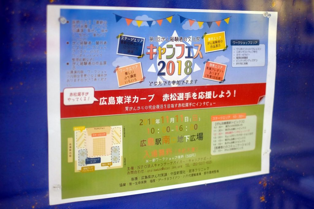 明後日11月11日(日)に、広島駅南口地下広場で、医師による「がん治療」についての講演や、がん患者によるステージ発表などが行われる「第1回 がん経験者の文化祭 …
