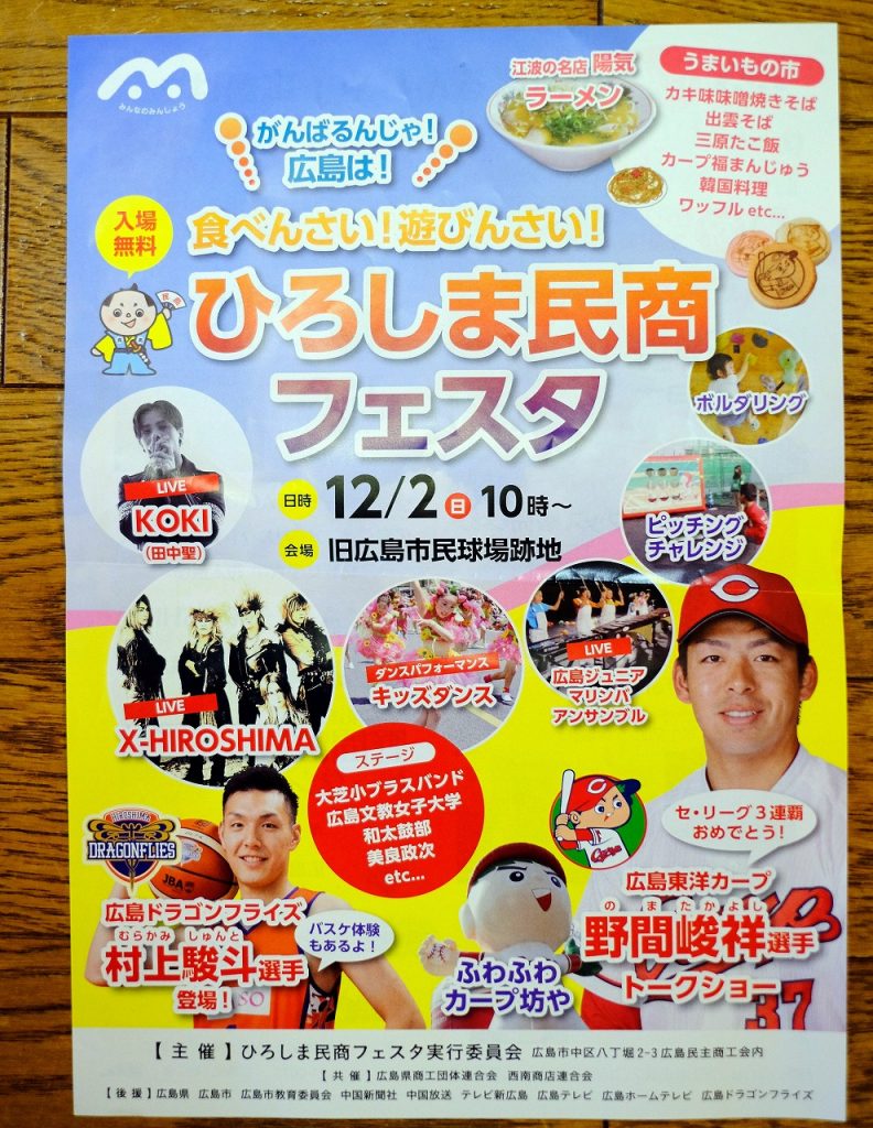 12/2(日)に旧広島市民球場跡地で「ひろしま民商フェスタ2018」開催!カープからは野間選手が