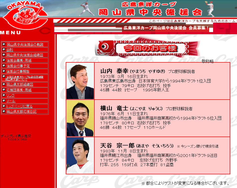 カープ岡山県中央後援会「優勝祝賀ファンの集い」は12/2(日)!山内・横山・天谷さん参加