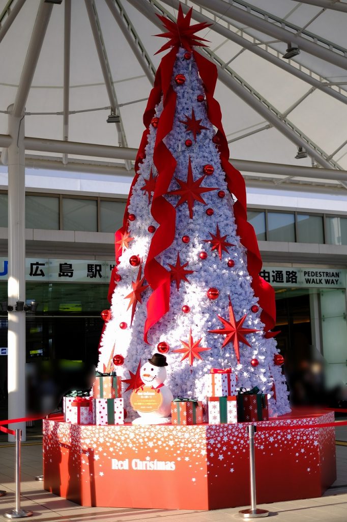 広島駅北口のペデストリアンデッキに今年も巨大なクリスマスツリーが登場!