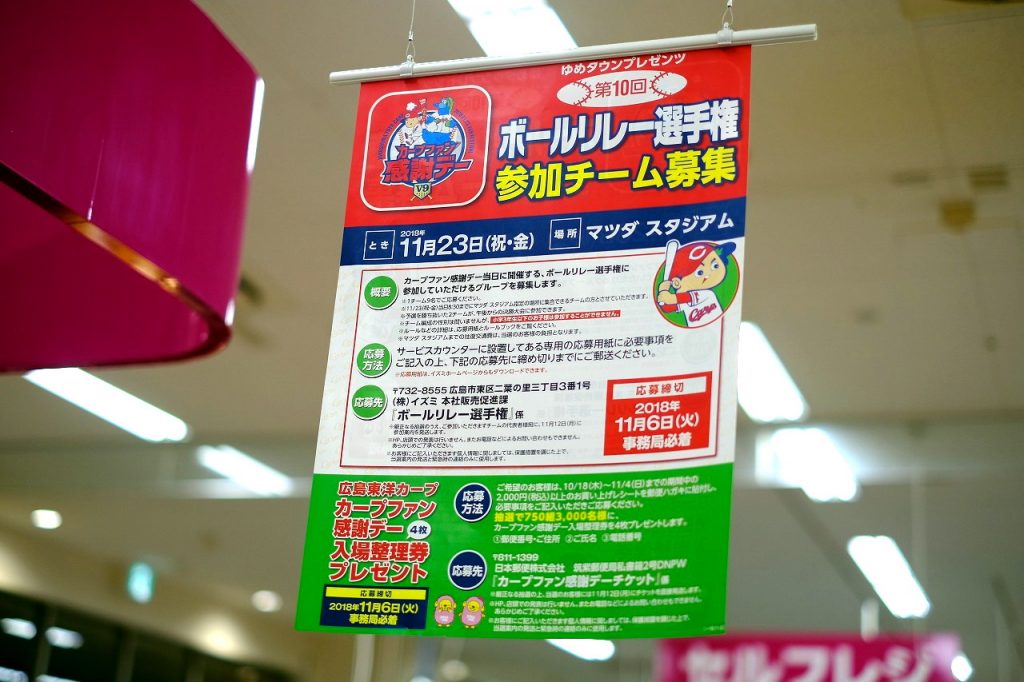 ゆめタウンでカープファン感謝デーのボールリレー選手権参加者募集!入場整理券プレゼントも