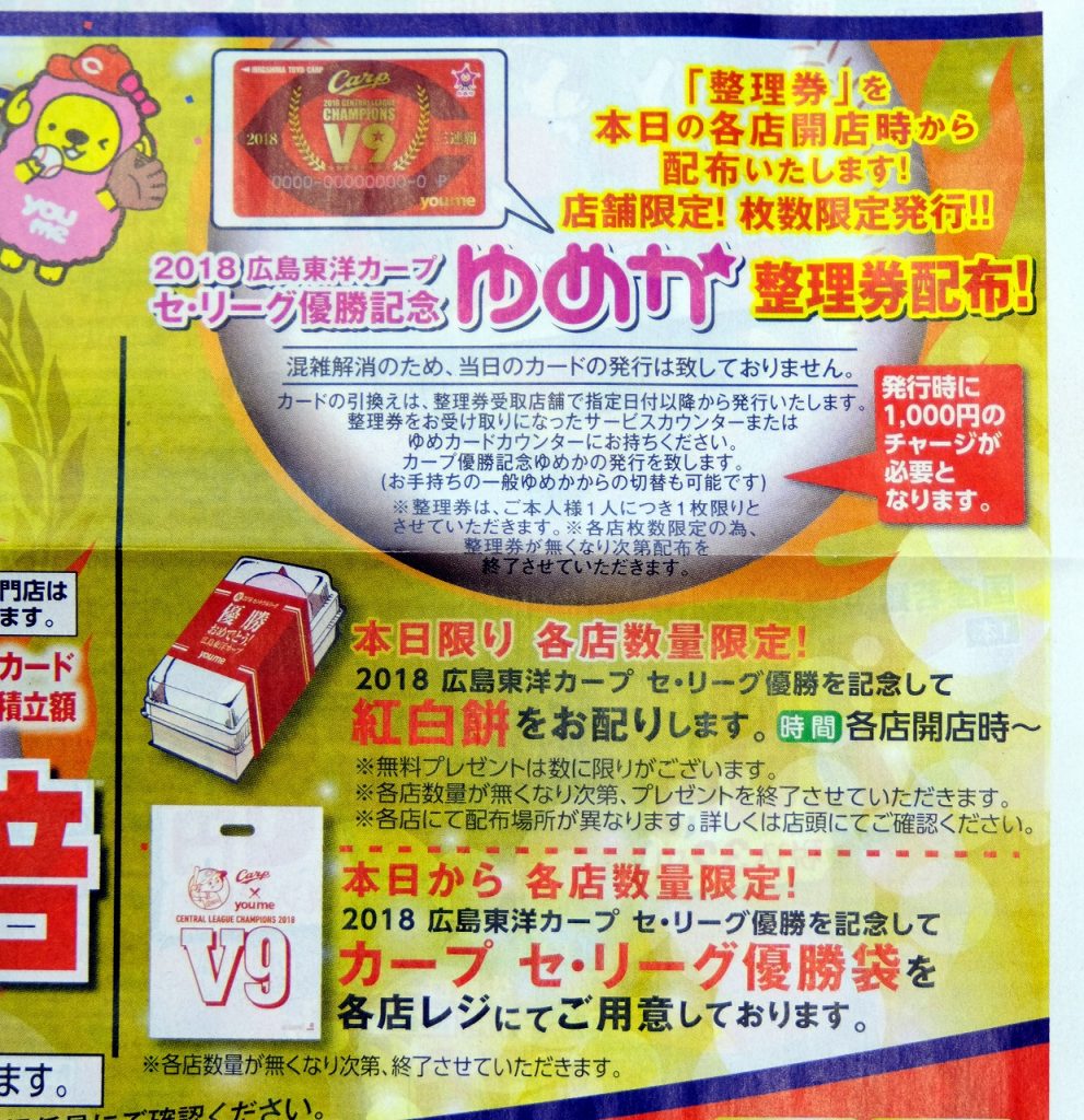 「ゆめタウン」から今年も「優勝記念ゆめか」、「2018 広島東洋カープ セ・リーグ優勝記念 ゆめか」が登場しました。本日9月27日(木)開店時から整理券を配布す…