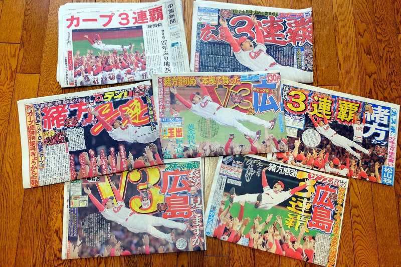 カープ優勝翌日の新聞各紙!カープ記事満載です