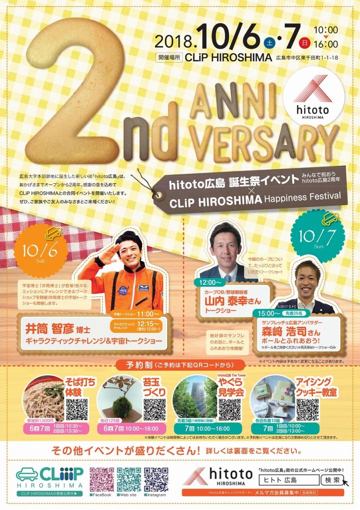 10/6(土)・7(日)に「hitoto広島 誕生祭イベント」開催!カープOB山内さんのトークショーも