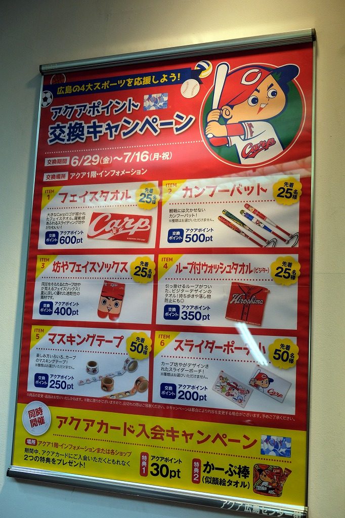 アクア広島センター街で本日6/29(金)~「アクアポイント交換キャンペーン ~広島東洋カープ~」開催!