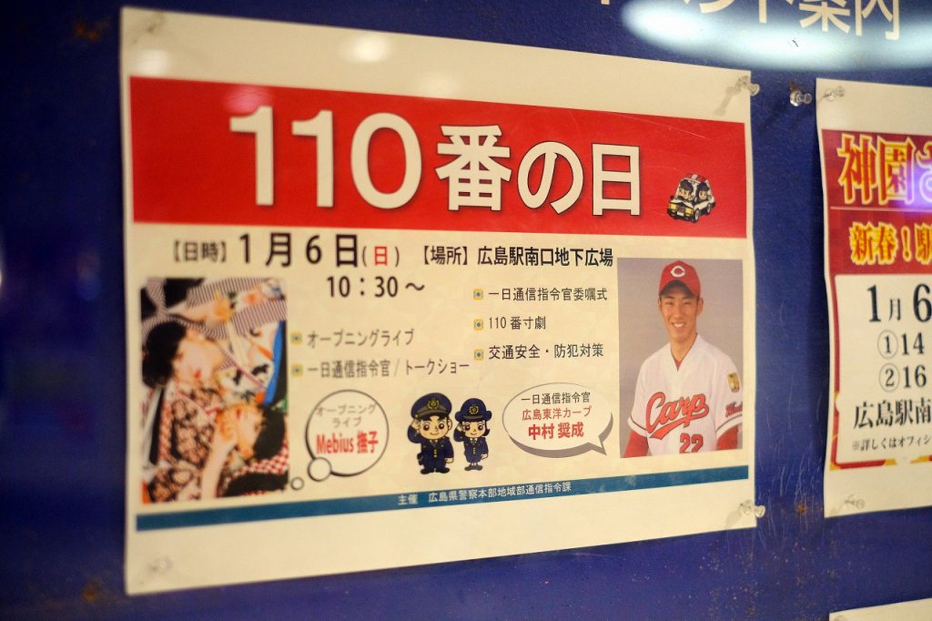1/6(日)広島駅南口地下で「110番の日」開催!今回はカープ中村奨成捕手が1日通信司令官に