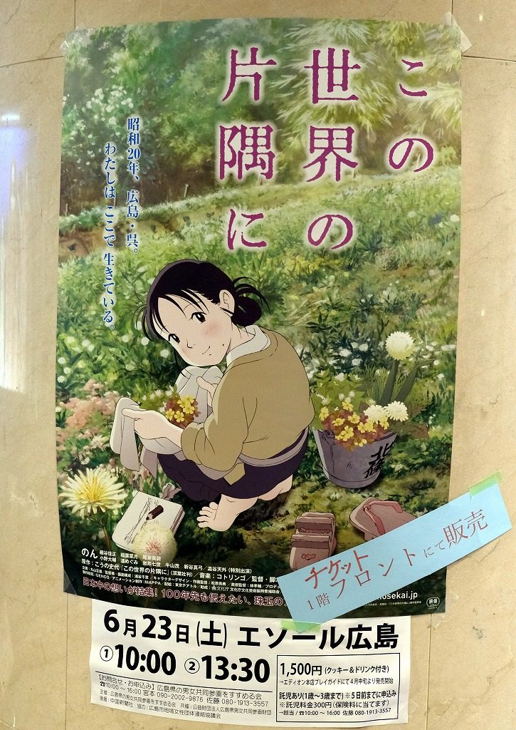 9月に閉館する「エソール広島」で最後の映画祭「この世界の片隅に」上映会が6/23(土)に開催!