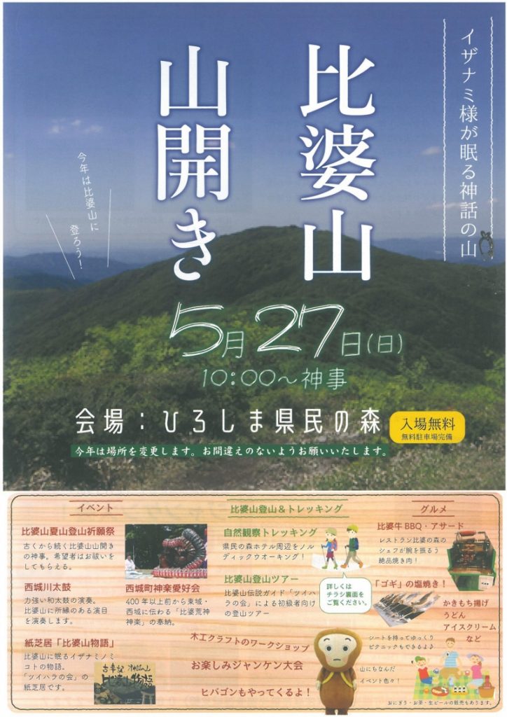ヒバゴン目撃騒動などでも話題になった、広島県庄原市にある「比婆山」。日本神話でイザナミが葬られたと記される地でも有名です。この比婆山が、本日5月27日(日)に山…