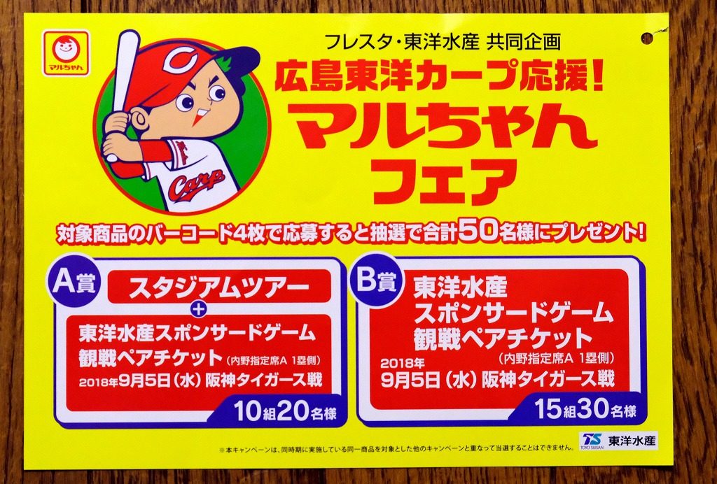 フレスタと東洋水産のカープ応援企画「マルちゃんフェア」の応募は本日5/31(木)まで