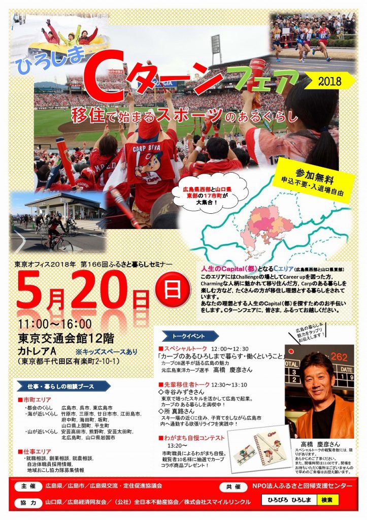 ひろしまでスポーツのある暮らしをPRするための「ひろしまCターンフェア」が、明日5月20日(日)11:00~16:00に千代田区有楽町にある「東京交通会館」の1…