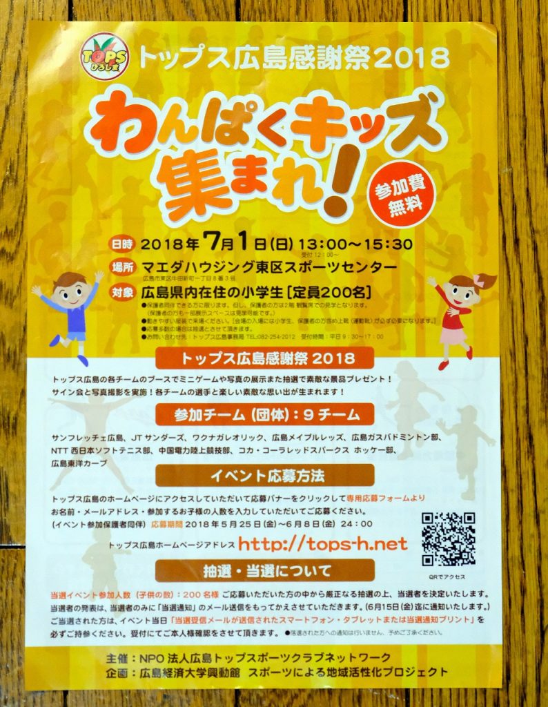広島県で地域密着に取り組むため結成された「トップス広島」から、7月1日(日)に「トップス広島感謝祭2018」が開催。明日5月25日(金)から応募受付が始まります…