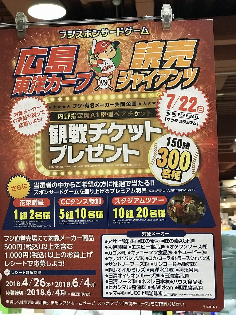 フジで「カープvs巨人」戦の観戦チケットプレゼントキャンペーン実施中!6/4(月)まで