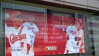 もみじ銀行 本店前の広告が田中選手と西川選手に変更されていました!