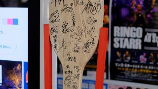 RCCのテレビ番組「元就。」で放送されたカープ選手のサインが書かれた杓子が展示中!