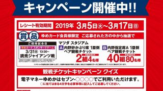 ゆめタウンやゆめマートでカープ開幕カードの観戦チケットが当たるキャンペーン開催中!