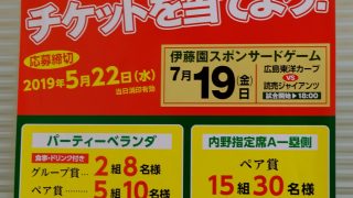 フレスタで伊藤園の商品を買って応募すればカープ観戦チケットが当たるキャンペーン「2019お~いお茶広島東洋カープ応援キャンペーン」が実施されています。 対象商品 … 続きを読む 観戦チケットが当たる!フレスタで「2019お~いお茶広島東洋カープ応援キャンペーン」実施中