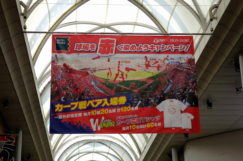 広島本通商店街で毎年恒例の「球場を赤く染めようキャンペーン!」実施中!