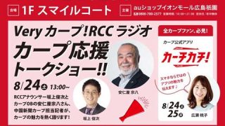 イオンモール広島祇園で8月24日(土)と8月25日(日)の2日間、「auサマーフェスティバル」が開催。 この2日間はカープ応援トークショーやビンゴ大会など、カー … 続きを読む イオンモール広島祇園で8/24(土)・25(日)に「auサマーフェスティバル」開催!カープOB安仁屋さんのトークショーも