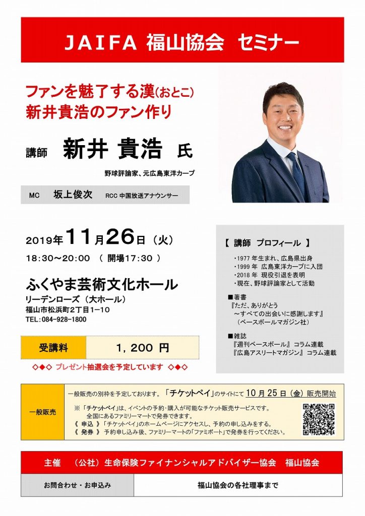 11/26(火)にJAIFA福山協会セミナー「ファンを魅了する漢(おとこ)新井貴浩のファン作り」開催!チケットは10/25(金)販売開始