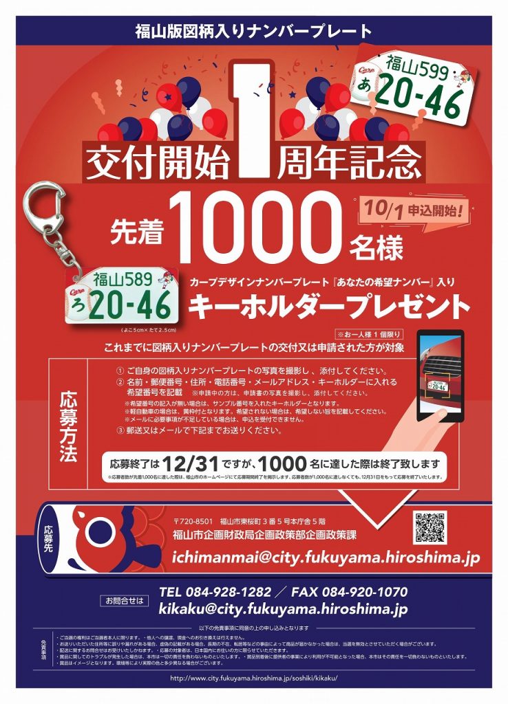昨年福山市で、カープの図柄入りナンバープレートが交付され、10月1日で1周年を迎えたことを記念し、カープナンバー図柄のキーホルダーをプレゼントするキャンペーンが…