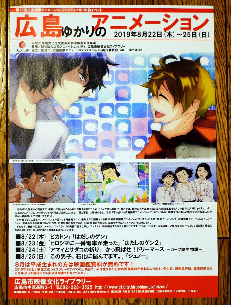 「愛と平和」の精神のもと、1985年に始まり次回が18回目となる「広島国際アニメーションフェスティバル」。開催は来年2020年8月の予定ですが、その応援企画とし…