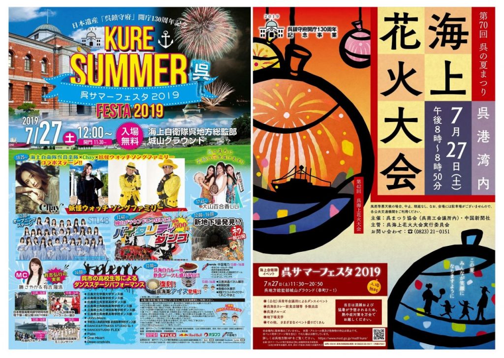 本日7/27(土)呉で「呉サマーフェスタ2019」&「第42回呉海上花火大会2019」開催!